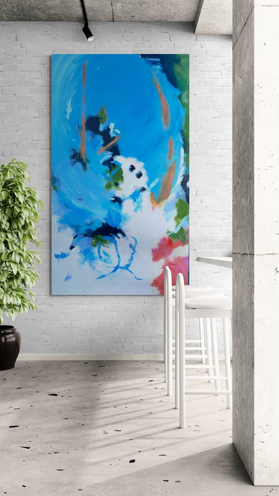 My abstract work leans heavily on my experience with composition, color values, layering, texturing, and my tools of the trade. Each painting starts with an attitude, a feeling I want to evoke. Then the painting evolves to its happy place. I have to refrain from controlling it and trust that the heart sees what the mind cannot see. It’s a leap of faith.